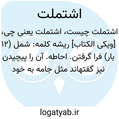 فرا گرفتن. احاطه. آن را پیچیدن نیز گفتهاند مثل جامه به خود پیچیدن در اقرب گوید. بگو: آیا آن دو نر را حرام کرده یا آن دو ماده را؟ یا آن بچهای را که رحمهای آن دو ماده بر گرفته؟ اشتمال فقط در دوفوق آمده است.