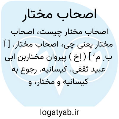 اصحاب مختار. [ اَ ب ِ م ُ ] ( اِخ ) پیروان مختاربن ابی عبید ثقفی. کیسانیه. رجوع به کیسانیه و مختار، و ملل ونحل شهرستانی چ مطبعه حجازی قاهره ج 1 ص 237 شود.