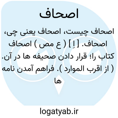 اصحاف کتاب را قرار دادن صحیفه ها در آن. فراهم آمدن نامه ها و فراهم آوردن. یا اصحاف چیزی جمع کردن صحیفه های بسیار در آن.