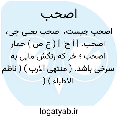 اصحب. [ اَ ح َ ] ( ع ص ) حمار اصحب؛ خر که رنگش مایل به سرخی باشد. ( منتهی الارب ) ( ناظم الاطباء ) ( آنندراج ). || میگون. ( محمودبن عمر ربنجنی ).