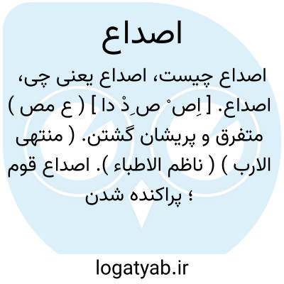 اصداع. [ اِص ْ ص ِدْ دا ] ( ع مص ) متفرق و پریشان گشتن. ( منتهی الارب ) ( ناظم الاطباء ). اصداع قوم؛ پراکنده شدن ایشان. ( از اقرب الموارد ) ( قطر المحیط ). تصدع. و رجوع به تصدع شود. || اصداع الجمع؛ در اصطلاح صوفیه، فرق است بعد از جمع بظهور کثرت در وحدت و اعتبار کثرت در وحدت، کذا فی لطایف اللغات. ( کشاف اصطلاحات الفنون ).