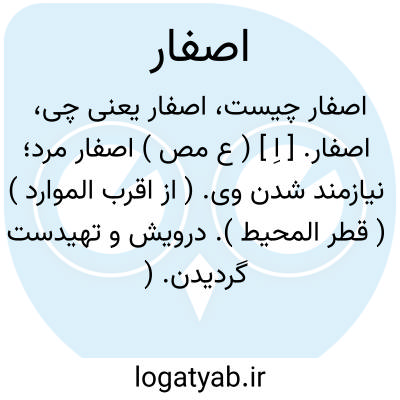 اصفار. [ اِ ] ( ع مص ) اصفار مرد؛ نیازمند شدن وی. ( از اقرب الموارد ) ( قطر المحیط ). درویش و تهیدست گردیدن. ( منتهی الارب ) ( ناظم الاطباء ) ( آنندراج ). درویش شدن. ( تاج المصادر بیهقی ). محتاج و درویش شدن. ( مؤید الفضلاء ). || اصفار بیت؛ خالی کردن آنرا، یقال: مااَصغیت ُ لک اناء و لا اصفرت لک فناء. ( از اقرب الموارد ). خالی کردن خانه را. ( منتهی الارب ) ( ناظم الاطباء ) ( آنندراج ).