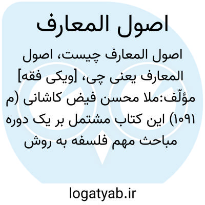 [ویکی نور] رساله اصول المعارف، از ملا فیض کاشانی که پس از مقدمه ی تحقیقی دانشمند بزرگوار استاد سید جلال الدین آشتیانی و هم به تصحیح و تعلیقات عالمانه ایشان، به چاپ رسیده و در واقع مختصری از کتاب عین الیقین است.