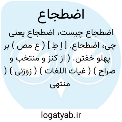 اضطجاع. [ اِ طِ ] ( ع مص ) بر پهلو خفتن. ( از کنز و منتخب و صراح ) ( غیاث اللغات ) ( زوزنی ) ( منتهی الارب ). پهلو بر زمین نهادن. ضَجْع. ضُجوع. اِضّجاع. اِلْطِجاع. انضجاع. ( از اقرب الموارد ). رجوع به مصادر مذکور شود. || در سجود فراهم آمدن مصلی و چسبانیدن سینه خود را بر زمین. ( منتهی الارب ).