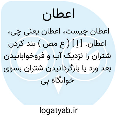 اعطان. [ اِ ] ( ع مص ) بند کردن شتران را نزدیک آب و فروخوابانیدن بعد ورد یا بازگردانیدن شتران بسوی خوابگاه بی آنکه آب خورده باشند و انتظار آن کردن و گذاشتن شتران در عطن. ( منتهی الارب ) ( آنندراج ) ( ناظم الاطباء ). فروخوابانیدن اشتر بر کنار آب. ( تاج المصادر بیهقی ). فروخوابانیدن اشتر بر کران آب. ( المصادر زوزنی ). حبس کردن شتران بر کنار آب و فروخوابانیدن آنها بعد ورد تا برگردند و باز آب بنوشند. || سیراب شدن شتران و فروخوابیدن آنها. ( از اقرب الموارد ). || خداوند شتران عاطنه گردیدن. ( منتهی الارب ) ( آنندراج ) ( ناظم الاطباء ).