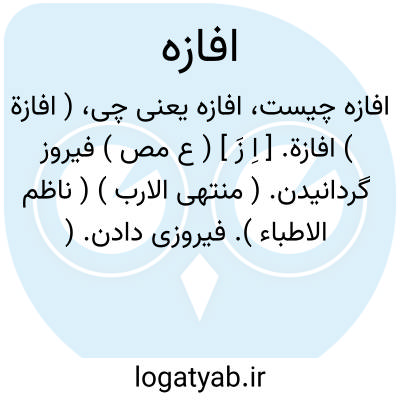 ( افازة ) افازة. [ اِ زَ ] ( ع مص ) فیروز گردانیدن. ( منتهی الارب ) ( ناظم الاطباء ). فیروزی دادن. ( آنندراج ) ( مؤید الفضلاء ). پیروز کردن. ( المصادر زوزنی ). پیروز ساختن کسی را بر چیزی. ( از اقرب الموارد ). یقال: افازه اﷲ بکذا؛ فیروز گرداند خدای او را در چنین کاری. ( ناظم الاطباء ) ( منتهی الارب ). || هلاک کردن. ( مؤید الفضلاء ). || رفتن. ( آنندراج ) ( مؤید الفضلاء ) ( یادداشت مؤلف ).