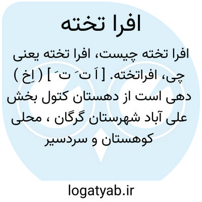 افراتخته. [ اَ ت َ ت َ ] ( اِخ ) دهی است از دهستان کتول بخش علی آباد شهرستان گرگان، محلی کوهستان و سردسیر و سکنه آن 120 تن است. آب آنجا از چشمه سار و محصول آن غلات، ارزن، لبنیات. شغل اهالی زراعت و گله داری. صنایعدستی زنان شال و کرباس بافی است وراه مالرو دارد. ( از فرهنگ جغرافیایی ایران ج 3 ).
