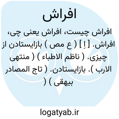 افراش. [ اِ ] ( ع مص ) بازایستادن از چیزی. ( ناظم الاطباء ) ( منتهی الارب ). بازایستادن. ( تاج المصادر بیهقی ) ( آنندراج ). || سخن بد گفتن. ( منتهی الارب ) ( آنندراج ) ( ناظم الاطباء ). || غیبت کردن. ( منتهی الارب ) ( ناظم الاطباء ). غیبت کسی کردن. ( آنندراج ). || شتر خردسال دادن. || تنک و باریک گردانیدن شمشیر را. || تیز کردن شمشیر را. || فرش گستردن جهت کسی. ( منتهی الارب ) ( آنندراج ) ( ناظم الاطباء ). گسترانیدن. ( تاج المصادر بیهقی ). || فراشناک گردیدن جای. || قفل کردن در را. ( ناظم الاطباء ) ( منتهی الارب ) ( آنندراج ). در قفل کردن. ( تاج المصادر بیهقی ).