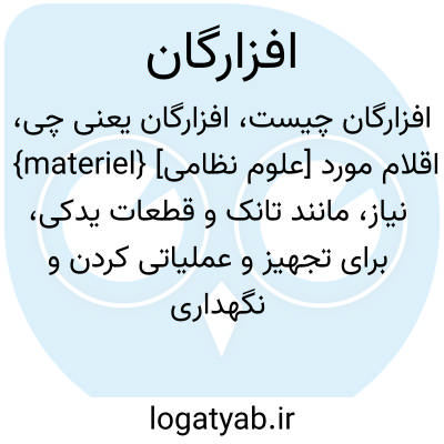 {materiel} [علوم نظامی] اقلام مورد نیاز، مانند تانک و قطعات یدکی، برای تجهیز و عملیاتی کردن و نگهداری و پشتیبانی فعالیت های نظامی در جهت اهداف اداری یا رزمی