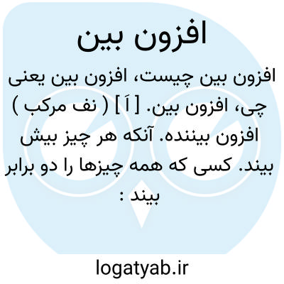 افزون بین. [ اَ ] ( نف مرکب ) افزون بیننده. آنکه هر چیز بیش بیند. کسی که همه چیزها را دو برابر بیند: