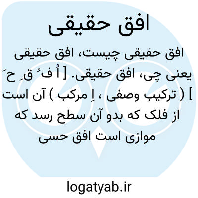 افق حقیقی. [ اُ ف ُ ق ِ ح َ ] ( ترکیب وصفی، اِ مرکب ) آن است از فلک که بدو آن سطح رسد که موازی است افق حسی را و مرکز زمین را بگذرد. و میان هر دو افق [حسی وحقیقی ] بس چیز نبود چون کره ای بزرگ باشد ولیکن ناپیدا شود. و چون کره خود بود آنچه میان هر دو افق است بزرگ بود و افق حقیقی کره را بدو نیم کند. ( التفهیم ص 62 ). افق حقیقی دایره عظیمه ایست که دو قطبش دو نقطه سمت الرأس و سمت القدم و خط واصل میان این دونقطه بر آن عمود باشد و بحکم اینکه عظیم است کره رابدونیم میکند. ( از حاشیه التفهیم چ همایی ص 62 ).