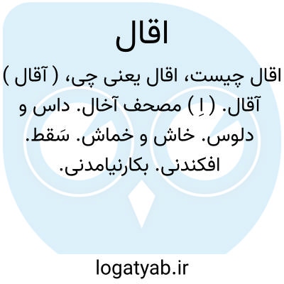 ( آقال ) آقال. ( اِ ) مصحف آخال. داس و دلوس. خاش و خماش. سَقط. افکندنی. بکارنیامدنی.