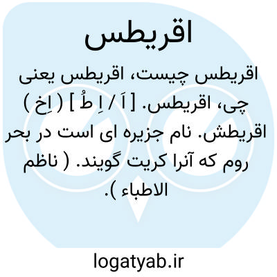اقریطس. [ اَ / اِ طُ ] ( اِخ ) اقریطش. نام جزیره ای است در بحر روم که آنرا کریت گویند. ( ناظم الاطباء ). نام جزیره ایست از جزایر یونان. ( برهان ) ( آنندراج ). این جزیره اندر شمال طرابلس است برابر وی، گرد وی سیصد میل است. ( حدود العالم ). و رجوع به تاریخ الحکماء قفطی و عیون الانباء و عقد الفرید 6:244 و نزهةالقلوب 3:237 و معجم البلدان و مراصدالاطلاع و نخبةالدهر و ابن جبیر شود.