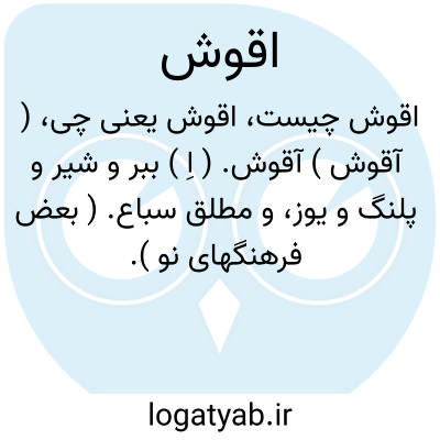 ( آقوش ) آقوش. ( اِ ) ببر و شیر و پلنگ و یوز، و مطلق سباع. ( بعض فرهنگهای نو ).