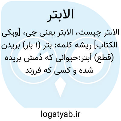 بریدن (قطع) اَبتر:حیوانی که دُمش بریده شده و کسی که فرزند ندارد (قاموس) راغب گوید: بتر در بریدن دم بکار رفته، فرزند نداشتن و ذکر خیر نداشتن معنای ثانوی آن است گویند: فلانی اَبتر است یعنی فرزند ندارد و یا ذکر خیر ندارد. یعنی دشمن تو همو بی دنباله است. گویند: چون عبداللّه فرزند حضرت رسول «صلی اللّه علیه و آله و سلم» که از حضرت خدیجه بود از دنیا رفت، کفّار گفتند اواَبتر است. و گویند: کفّار گفتند چون محمّد از دنیا رفت دین و آئین اش نیز از بین میرود و اثری از آن نمیماند، لذا آیه فوق نازل شد. نا گفته نماند: قول دوّم قریب به تحقیق است و میشود گفت که: این سوره جواب هر دو قول است و خبر میدهد که نام مبارک و ذکر خیر و فرزندان و پیروان دین آن حضرت روز افزون و همیشگی خواهند بود. بقیه کلام در «کوثر» دیده شود.