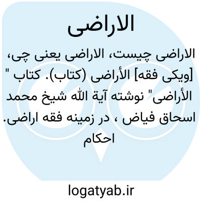 [ویکی فقه] الاراضی (کتاب). کتاب " الأراضی" نوشته آیة الله شیخ محمد اسحاق فیاض، در زمینه فقه اراضی. احکام و فروعات فقهی مربوط به انواع زمین و مسائل شرعی مربوط به آنها مورد بحث قرار گرفته است. نگارنده از مراجع تقلید شیعه در عراق و از مدرسان حوزه علمیه نجف اشرف است.