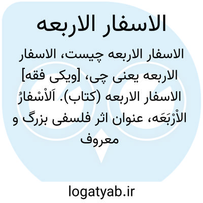 [ویکی فقه] الاسفار الاربعه (کتاب). اَلاْسْفارُ الاْرْبَعَه، عنوان اثر فلسفی بزرگ و معروف صدرالدین شیرازی می باشد.