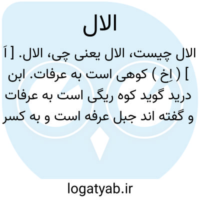 الال. [ اَ ] ( اِخ ) کوهی است به عرفات. ابن درید گوید کوه ریگی است به عرفات و گفته اند جبل عرفه است و به کسر اول نیز روایت شده است. ( معجم البلدان ). کوهی است به مکه. ( مهذب الاسماء ). و رجوع به عیون الاخبار ج 3 ص 266 شود.