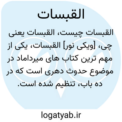[ویکی شیعه] القبسات (کتاب). القَبَسات از مهم ترین آثار میرداماد است که نام کامل آن در برخی از منابع "قبسات حق الیقین فی حدوث العالمْ" آمده است و چنانکه از این عنوان آشکار است، مساله خلق جهان و چگونگی صدور عالم از باری تعالی در این کتاب مطرح گردیده است.