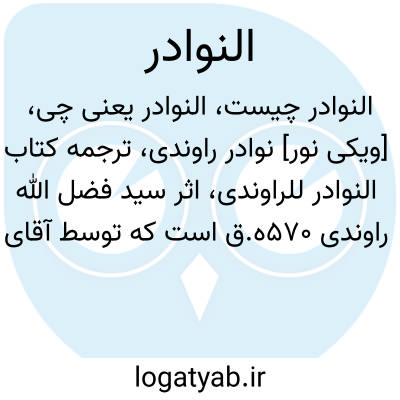 [ویکی نور] نوادر راوندی، ترجمه کتاب النوادر للراوندی، اثر سید فضل الله راوندی 570ه.ق است که توسط آقای صادقی اردستانی، از عربی به فارسی ترجمه گشته است.