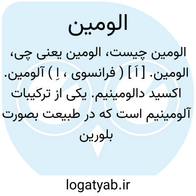 ( آلومین ) ( اسم ) یکی از ترکیبات آلومینیوم که در طبیعت بصورت بلورین موجود است. و معمولا آنرا از تصفی. بکسیت بدست میاورند. آلومین حاصل گردیست سفید و زیر انگشتان نرم و در ۲٠۴٠ درجه حرارت ذوب میشود.
