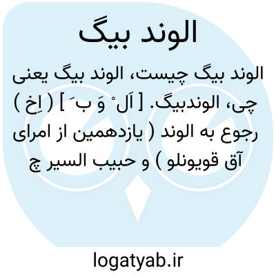 الوندبیگ. [ اَل ْ وَ ب َ ] ( اِخ ) رجوع به الوند ( یازدهمین از امرای آق قویونلو ) و حبیب السیر چ خیام ج 4 ص 446 شود.