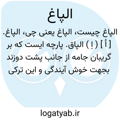 الپاغ. [ اُ ] ( اِ ) الپاق. پارچه ایست که بر گریبان جامه از جانب پشت دوزند بجهت خوش آیندگی و این ترکی است و بفارسی زورنیم گویند. ( رشیدی از فرهنگ ).