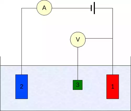 نوعی الکترود در پیلهای برق شیمیایی/ الکتروشیمیایی که گیرنده یا دهندۀ جریان به الکترود آزمون است.
