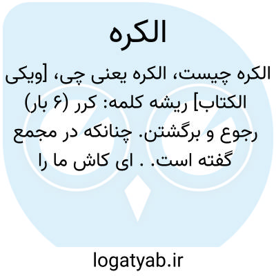 رجوع و برگشتن. چنانکه در مجمع گفته است.. ای کاش ما را برگشتی بود تا از آنها بیزاری می‏جستیم چنانکه ازما بیزاری جستند آیه. معنی آن را بهتر روشن می‏کند که آن مانند «قَعَدْتُ جُلُوساً» می‏باشد یعنی: و باز دوباره نظر بگردان. *. مراد از کرة رجوع دولت و اقتدار است چنانکه «اَمْدَدْناکُمْ...» مبین آن می‏باشد یعنی سپس اقتدار و تسلط را بر شما برگرداندیم و با اموال و اولاد مددتان دادیم.