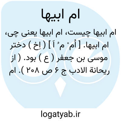ام ابیها. [ اُم ْ م ُ اَ ] ( اِخ ) دختر موسی بن جعفر ( ع ) بود. ( از ریحانة الادب ج 6 ص 208 ). ام ابیها. [ اُم ْ م ُ اَ ] ( اِخ ) دختر جعفر یا عبداﷲبن جعفربن ابی طالب. از محدثان بود و از پدر خود روایت حدیث کرده است. رجوع به ریحانة الادب ج 6 ص 208 شود.