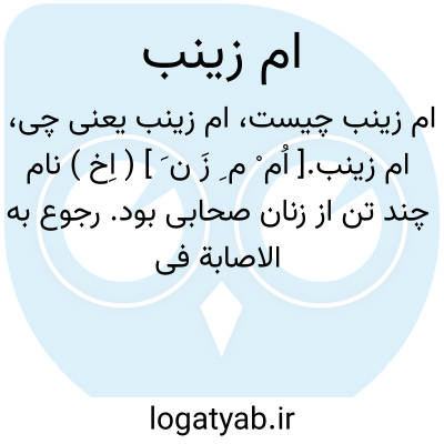 ام زینب.[ اُم ْ م ِ زَ ن َ ] ( اِخ ) نام چند تن از زنان صحابی بود. رجوع به الاصابة فی تمییزالصحابة ج 8 ص 236 شود.
