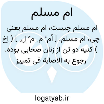 ام مسلم. [ اُم ْ م ِ م ُ ل ِ ] ( اِخ ) کنیه دو تن از زنان صحابی بوده. رجوع به الاصابة فی تمییز الصحابة ج 8 ص 280 شود.