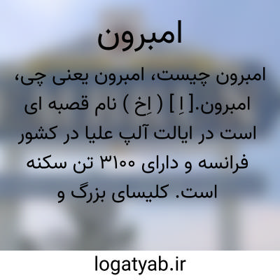 امبرون.[ اِ ] ( اِخ ) نام قصبه ای است در ایالت آلپ علیا در کشور فرانسه و دارای 3100 تن سکنه است. کلیسای بزرگ و مشهوری دارد که در قرون وسطی زیارتگاه مسیحیان کاتولیک بوده است. ( از قاموس الاعلام ترکی ج 2 ص 1033 ).