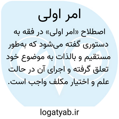 اصطلاح «امر اولی» در فقه به دستوری گفته می‌شود که به‌طور مستقیم و بالذات به موضوع خود تعلق گرفته و اجرای آن در حالت علم و اختیار مکلف واجب است. این نوع امر، بدون در نظر گرفتن شرایط اضطراری، جهل، شک، اکراه یا تقیه، ماهیتاً و از لحاظ فقهی به موضوع نسبت داده می‌شود و هدف آن تعیین وظیفه واقعی مکلف در وضعیت عادی است. امر اولی برخلاف امر ثانوی و ظاهری است، زیرا در موارد ثانوی، شرایط خارجی یا موانع بر اجرای حکم تأثیر می‌گذارند و ممکن است حکم اولیه را تغییر دهند. نمونه واضح امر اولی، دستور به وضو گرفتن پیش از نماز است که در حالت وجود آب و امکان استفاده از آن، واجب و مستقیم محسوب می‌شود. اگر شرایطی مانند نبود آب یا ضرر جسمی وجود داشته باشد، این حکم به حکم ثانوی تبدیل شده و تیمم جایگزین وضو می‌شود. بنابراین، این مفهوم نقش پایه‌ای در فهم وظایف دینی و فقهی دارد و نقطه شروع برای بررسی احکام جایگزین و شرایط استثنایی است. شناخت دقیق امر اولی، امکان تمییز میان دستور واقعی و دستورات جایگزین را فراهم می‌کند و در تحلیل مسائل فقهی و اخلاقی کاربرد اساسی دارد. این مفهوم زمینه‌ای اساسی فراهم می‌کند تا مشخص شود که تکالیف شرعی چگونه به مکلف در وضعیت عادی و بدون وجود مانع یا شرایط استثنایی تعلق می‌گیرد.