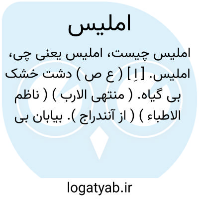 املیس. [ اِ ] ( ع ص ) دشت خشک بی گیاه. ( منتهی الارب ) ( ناظم الاطباء ) ( از آنندراج ). بیابان بی گیاه. ( از اقرب الموارد ). املیسة. ج، امالیس،امالس ( بطور شاذ ). ( از منتهی الارب ) ( از اقرب الموارد ). گویند فلاة املیس و املیسة. ( از اقرب الموارد ).