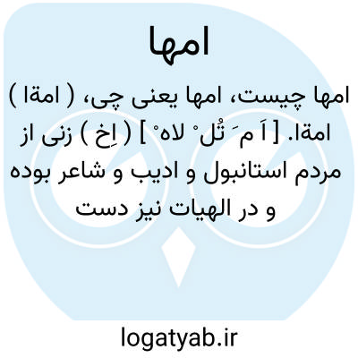 ( امةا ) امةا. [ اَ م َ تُل ْ لاه ْ ] ( اِخ ) زنی از مردم استانبول و ادیب و شاعر بوده و در الهیات نیز دست داشته و در اشعار خود صدقی تخلص کرده است و دیوان ترکی دارد. از اشعار او در خیرات حسان ج 1 ص 32 و قاموس الاعلام ترکی ج 2 ص 1038 آمده. وفات وی 1115 یا 1135 هَ.ق. اتفاق افتاده است.