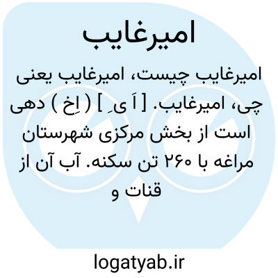 امیرغایب. [ اَ ی ِ ] ( اِخ ) دهی است از بخش مرکزی شهرستان مراغه با 260 تن سکنه. آب آن از قنات و چشمه و محصول آن غلات، کشمش، بادام و حبوب است. ( از فرهنگ جغرافیائی ایران ج 4 ).