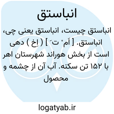 انباستق. [ اَم ْ ت َ ] ( اِخ ) دهی است از بخش هوراند شهرستان اهر با 152 تن سکنه. آب آن از چشمه و محصول آن غلات است. ( از فرهنگ جغرافیائی ایران ج 4 ).