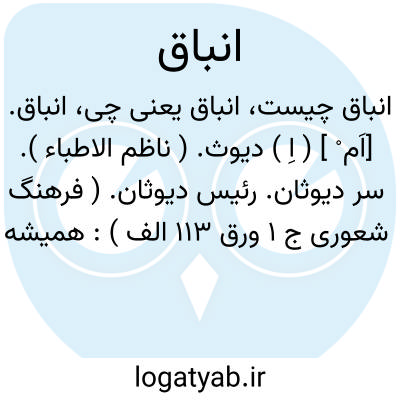 انباق. [اَم ْ ] ( اِ ) دیوث. ( ناظم الاطباء ). سر دیوثان. رئیس دیوثان. ( فرهنگ شعوری ج 1 ورق 113 الف ):