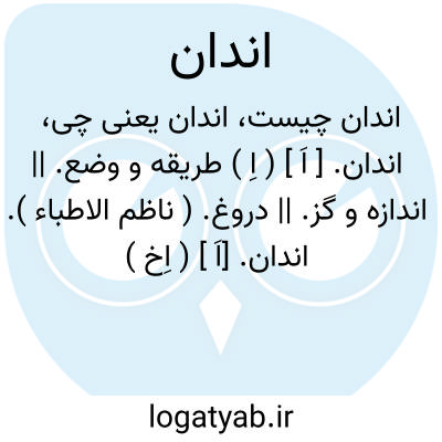 اندان. [ اَ ] ( اِ ) طریقه و وضع. || اندازه و گز. || دروغ. ( ناظم الاطباء ).