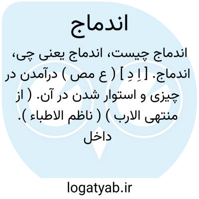 اندماج. [ اِ دِ ] ( ع مص ) درآمدن در چیزی و استوار شدن در آن. ( از منتهی الارب ) ( ناظم الاطباء ). داخل شدن در چیزی و مستحکم شدن در آن. ( از اقرب الموارد ). در رفته شدن بچیزی و درآمدن و استوار شدن بجایی. ( غیاث اللغات ) ( آنندراج ). || مدور گردیدن. ( از منتهی الارب ) ( ناظم الاطباء ). گرد شدن. مدور شدن. ( یادداشت مؤلف ). || در اصطلاح حکما به معنی تکاثف و مقابل تخلخل است. ( از کشاف اصطلاحات الفنون ). و رجوع به تخلخل و تکاثف شود.