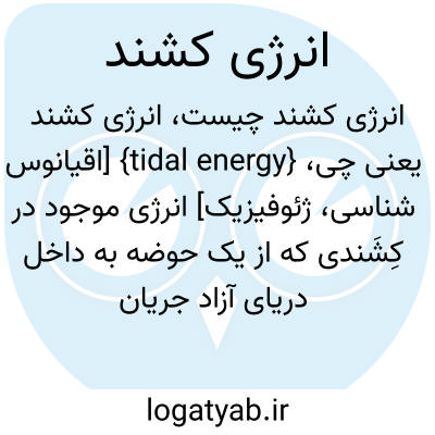 {tidal energy} [اقیانوس شناسی، ژئوفیزیک] انرژی موجود در کِشَندی که از یک حوضه به داخل دریای آزاد جریان می یابد