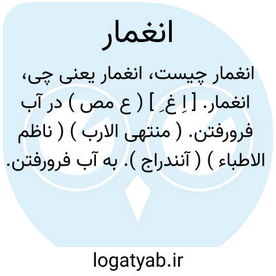 انغمار. [ اِ غ ِ ] ( ع مص ) در آب فرورفتن. ( منتهی الارب ) ( ناظم الاطباء ) ( آنندراج ). به آب فرورفتن. اغتماس. ( از اقرب الموارد ). به آب فروشدن. ( تاج المصادر بیهقی ) ( مصادر زوزنی ).