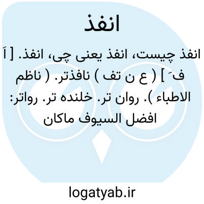 انفذ. [ اَ ف َ ] ( ع ن تف ) نافذتر. ( ناظم الاطباء ). روان تر. خلنده تر. رواتر: افضل السیوف ماکان امضی و انفذ. ( طهارة الاعراق ).