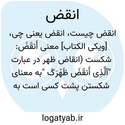 [ویکی الکتاب] معنی أَنقَضَ: شکست (انقاض ظهر در عبارت "ﭐلَّذِی أَنقَضَ ظَهْرَکَ "به معنای شکستن پشت کسی است به نحوی که صدای شکستن به گوش برسد، آنطور که از تخت و کرسی و امثال آن وقتی کسی روی آن مینشیند، و یا چیز سنگینی روی آن میگذارند صدا برمیخیزد، و کنایه است از سنگینی باری که...