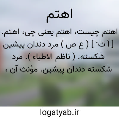 اهتم. [ اَ ت َ ] ( ع ص ) مرد دندان پیشین شکسته. ( ناظم الاطباء ). مرد شکسته دندان پیشین. مؤنث آن، هتماء. ( منتهی الارب ) ( آنندراج ). دندان پیشین شکسته. ( المصادر زوزنی ) ( مهذب الاسماء نسخه خطی ) ( تاج المصادر بیهقی ). || در اصطلاح علم عروض یکی از مفاعیل است که در آن زحاف شده و آن فعول بسکون لام است در آنجا که از مفاعیل منشعب باشد. و رجوع به المعجم فی معاییر اشعارالعجم شود.