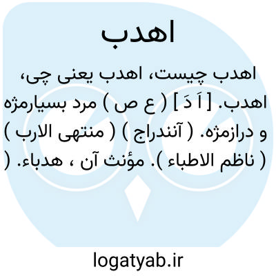 اهدب. [ اَ دَ ] ( ع ص ) مرد بسیارمژه و درازمژه. ( آنندراج ) ( منتهی الارب ) ( ناظم الاطباء ). مؤنث آن، هدباء. ( منتهی الارب ). درازمژگان. ( وطواط ). درازمژگان. مؤنث آن، هدباء. ج، هدب. ( مهذب الاسماء نسخه خطی ). درازمژه. درازمژگان. ( بحر الجواهر ).