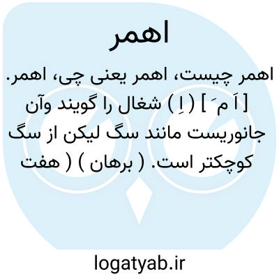 اهمر. [ اَ م َ ] ( اِ ) شغال را گویند وآن جانوریست مانند سگ لیکن از سگ کوچکتر است. ( برهان ) ( هفت قلزم ). و رجوع به انجمن آرا و آنندراج شود.