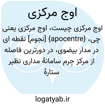 {apocentre} [نجوم] نقطه ای در مدار بیضوی، در دورترین فاصله از مرکز جِرم سامانۀ مداری نظیر ستارۀ دوتایی یا یک ستاره و قمرش