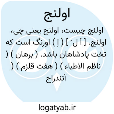 اولنج. [ اَ ل َ ] ( اِ ) اورنگ است که تخت پادشاهان باشد. ( برهان ) ( ناظم الاطباء ) ( هفت قلزم ) ( آنندراج ). || عقل. || دانش. ( برهان ) ( ناظم الاطباء ) ( هفت قلزم ). || فر و زیبایی. || شادی و خوشحالی. ( هفت قلزم ). || زندگانی. ( برهان ) ( ناظم الاطباء ). || مکروفریب و حیله. ( برهان ) ( ناظم الاطباء ). || سگ انگور. ( برهان ) ( ناظم الاطباء ) ( شرفنامه منیری ) ( آنندراج ). عنب الثعلب. ( برهان ) ( ناظم الاطباء ). رجوع به اورنگ شود.